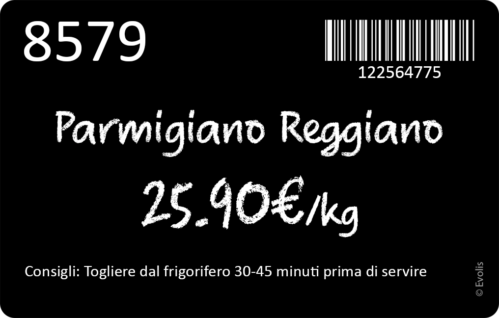 Stampate voi stessi le vostre etichette su richiesta, direttamente nel vostro punto vendita in circa 15 secondi. Le etichette in PVC sono igieniche e facili da pulire.