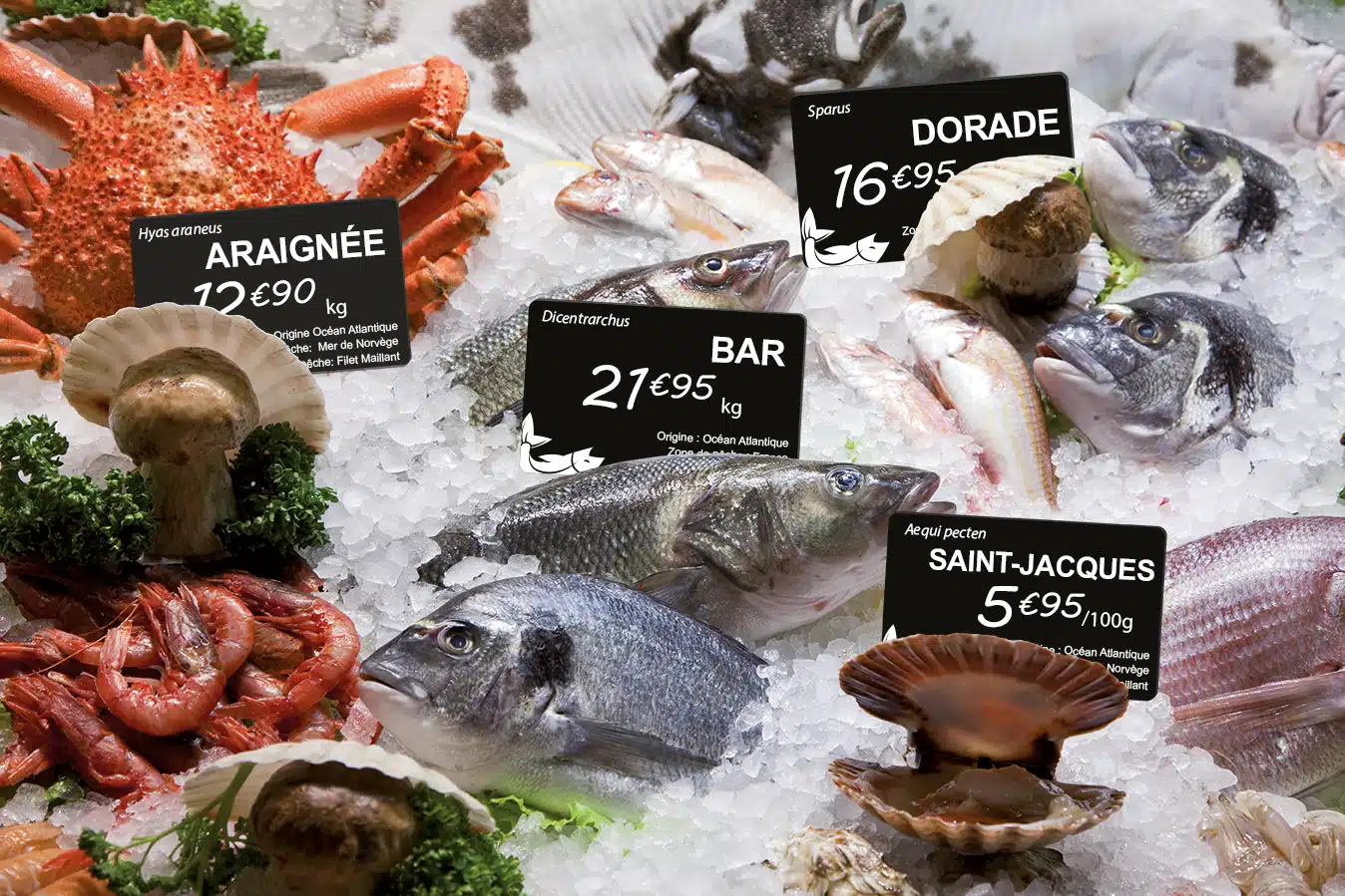 Promuovete i vostri prodotti ittici con etichette di prezzo chiare, resistenti e professionali. Edikio, la soluzione semplice ed elegante.