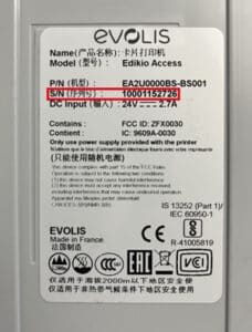 *Dal numero di serie 10001152726. Per trovare il numero di serie: andare sul fondo della stampante Access! Lì troverete un’etichetta e l’indicazione S/N che corrisponde al numero di serie della vostra stampante: