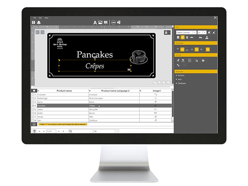 Intuitivo, pratico e facile da usare, consente di creare rapidamente etichette per buffet e presentazioni dall’aspetto professionale.