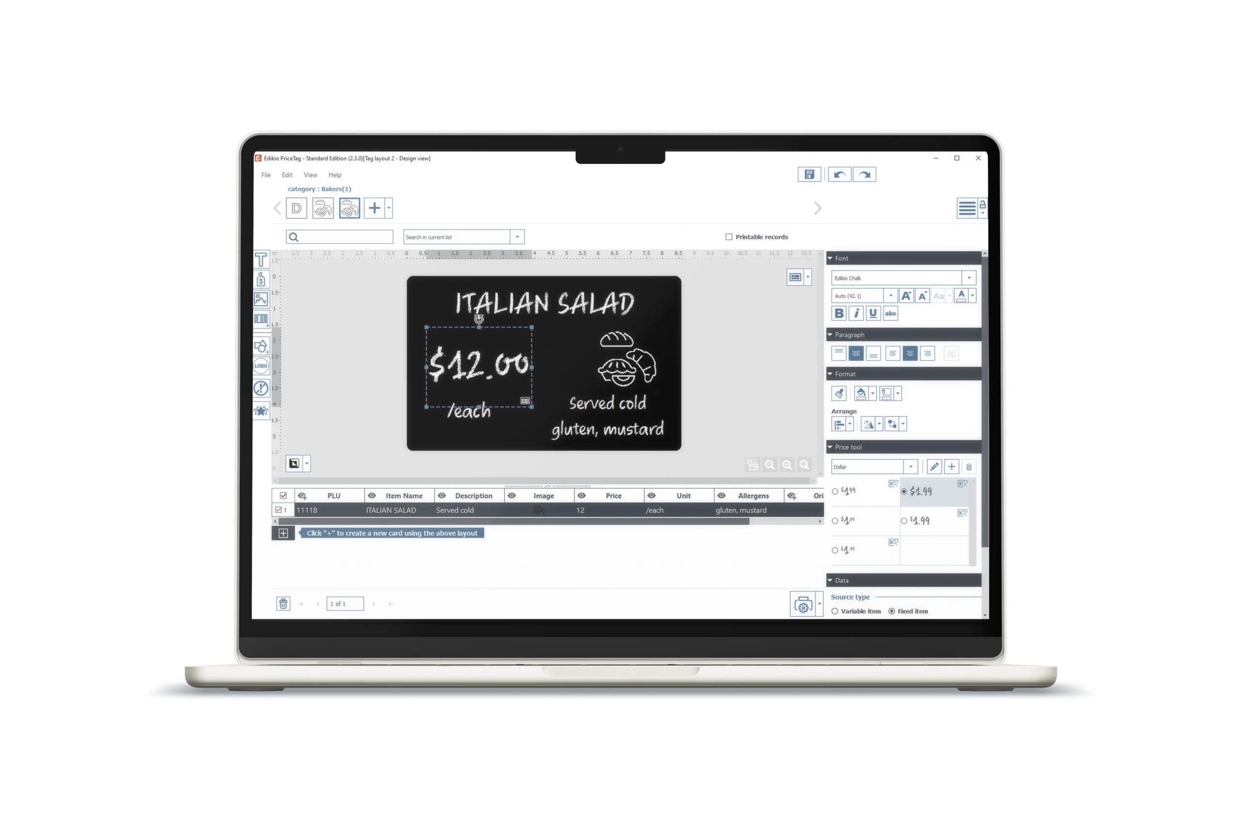 Con la soluzione Edikio Access hai accesso alla versione Edikio Price Tag “Edition Lite”, compatibile con Windows® e macOS.