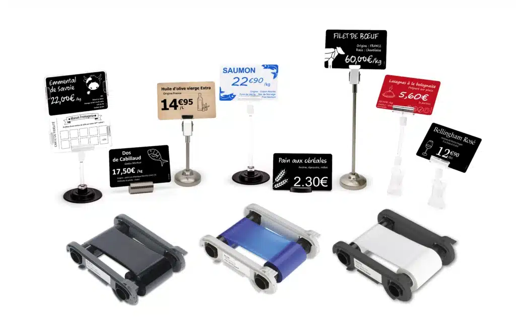 Numerose combinazioni di etichette prezzo sono possibili grazie alla nostra gamma completa di cartoncini e nastri