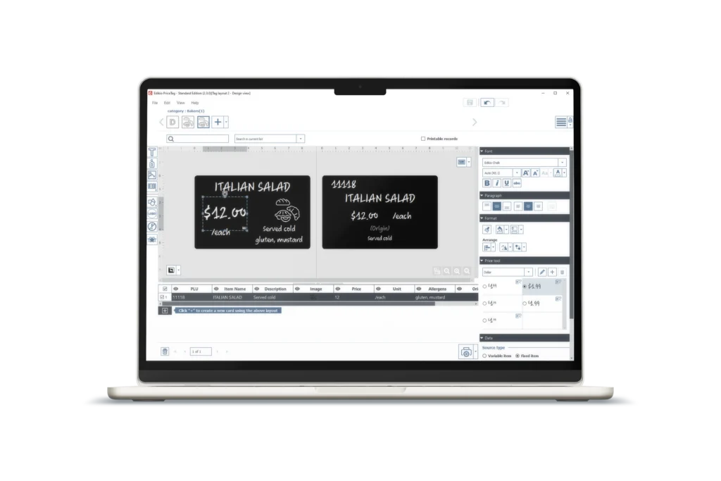 La soluzione avanzata all-in-one per creare e stampare etichette prezzo su schede PVC fronte-retro.