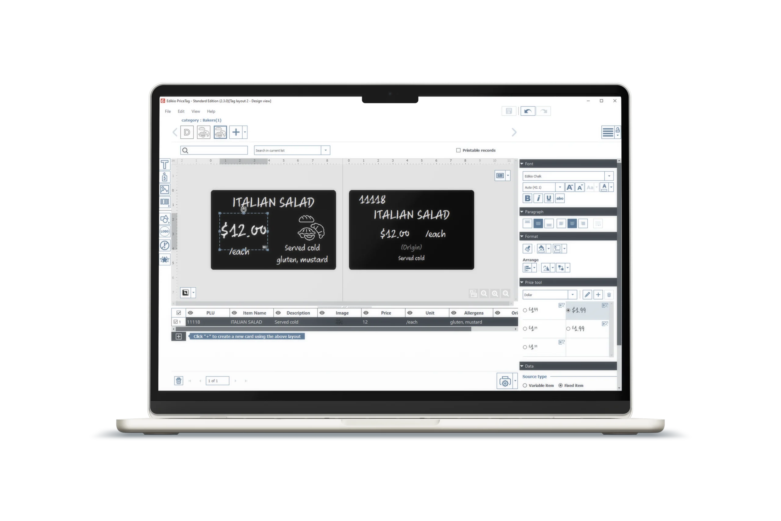 La soluzione include il software avanzato Edikio Price Tag “Edition Pro”, compatibile con Windows® e macOS®.
