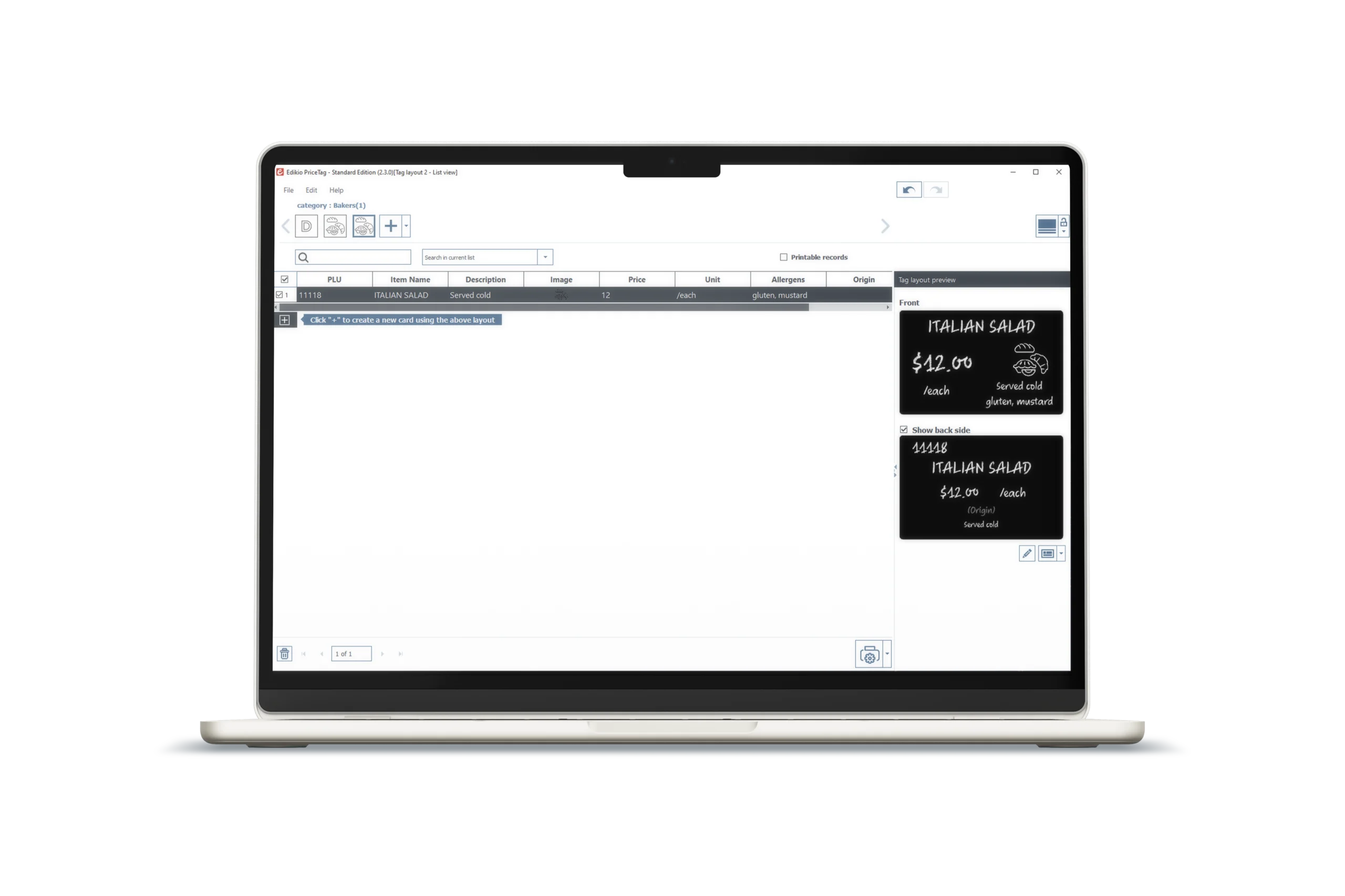 La soluzione avanzata all-in-one per creare e stampare etichette prezzo su schede PVC fronte-retro.