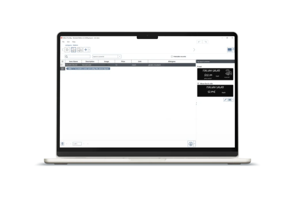 Il formato lungo è ideale per visualizzare più informazioni, utilizzare caratteri più grandi o rispettare specifici obblighi normativi in settori come panetterie, macellerie, supermercati e molto altro (link alle pagine di settore).