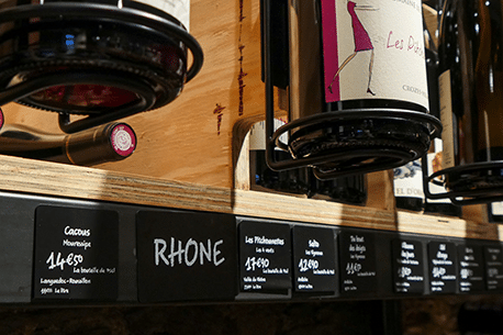 All’apertura della cantina qualche mese dopo, Les Carmélites ha deciso di massimizzare l’investimento utilizzando un’unica soluzione Edikio Price Tag Flex per entrambi i negozi. Era naturale adattare l’uso di Edikio Price Tag all’immagine della cantina e alle esigenze del suo ambiente di vendita.